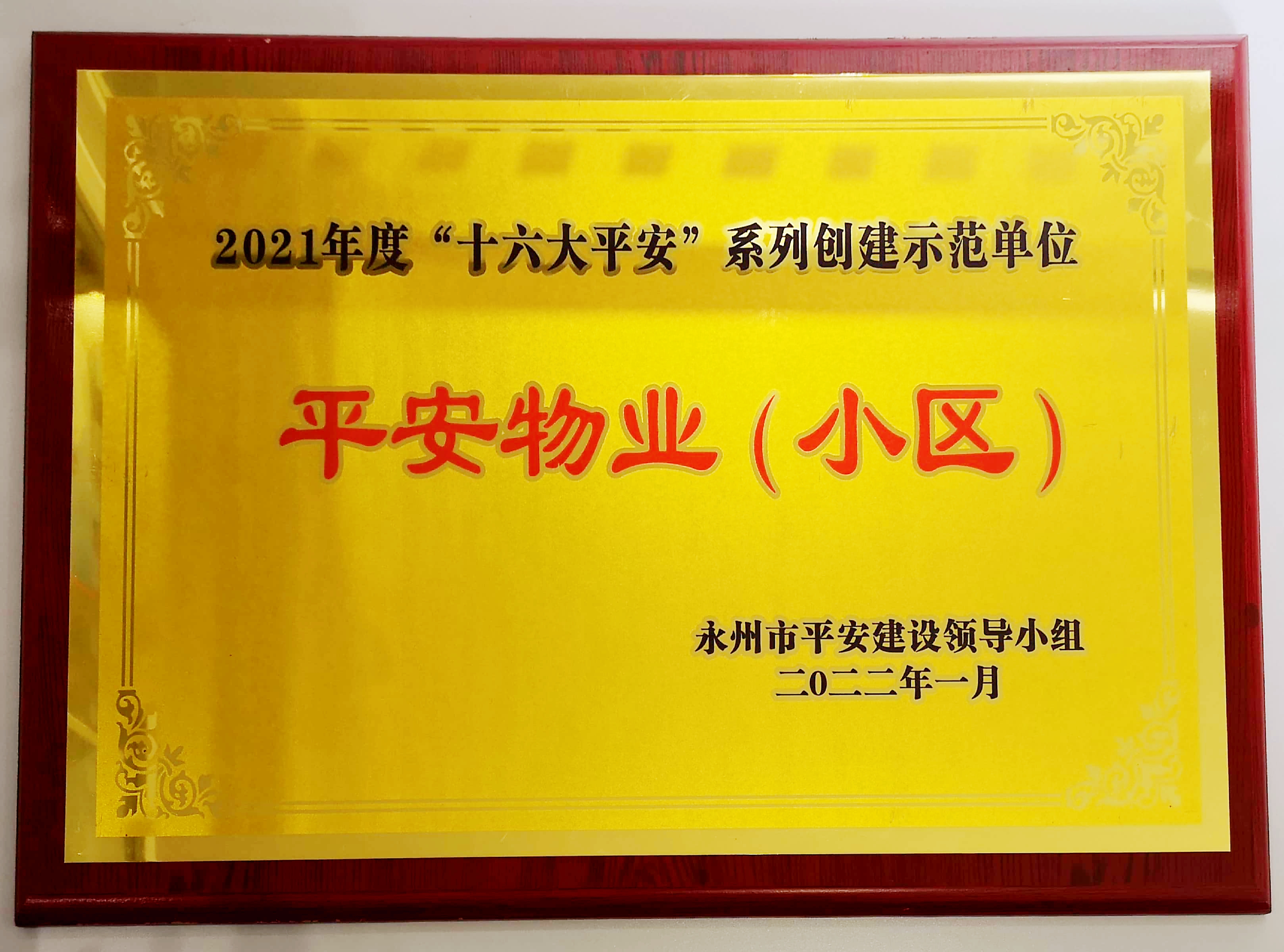 榮獲2021年度“十六大平安”系列創建示范單位“平安物業”稱號